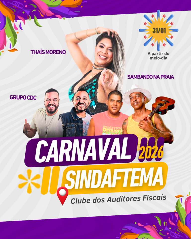VEM AÍ! Carnaval Sindaftema 2026! Dia 31/01, no Clube dos Auditores Fiscais.